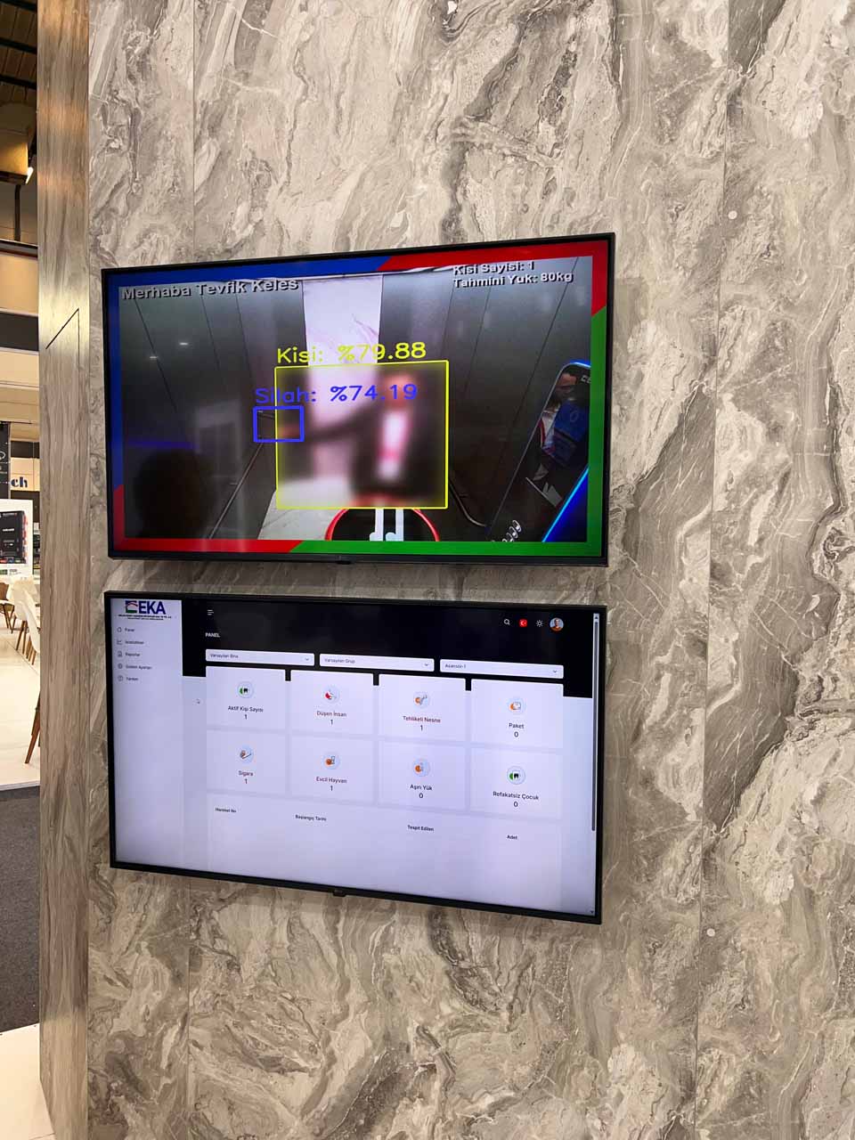 Thanks to this system developed by EKA, every creature or object entering the elevator can be detected and tracked with a temporary identification number. People identified by the facial recognition system are welcomed by the system. The application, which draws attention with its ability to distinguish non-human creatures, can also instantly determine the number of people in the cabin and provide statistical data. This data can be used for cabin load forecasting and predicting possible overload situations.