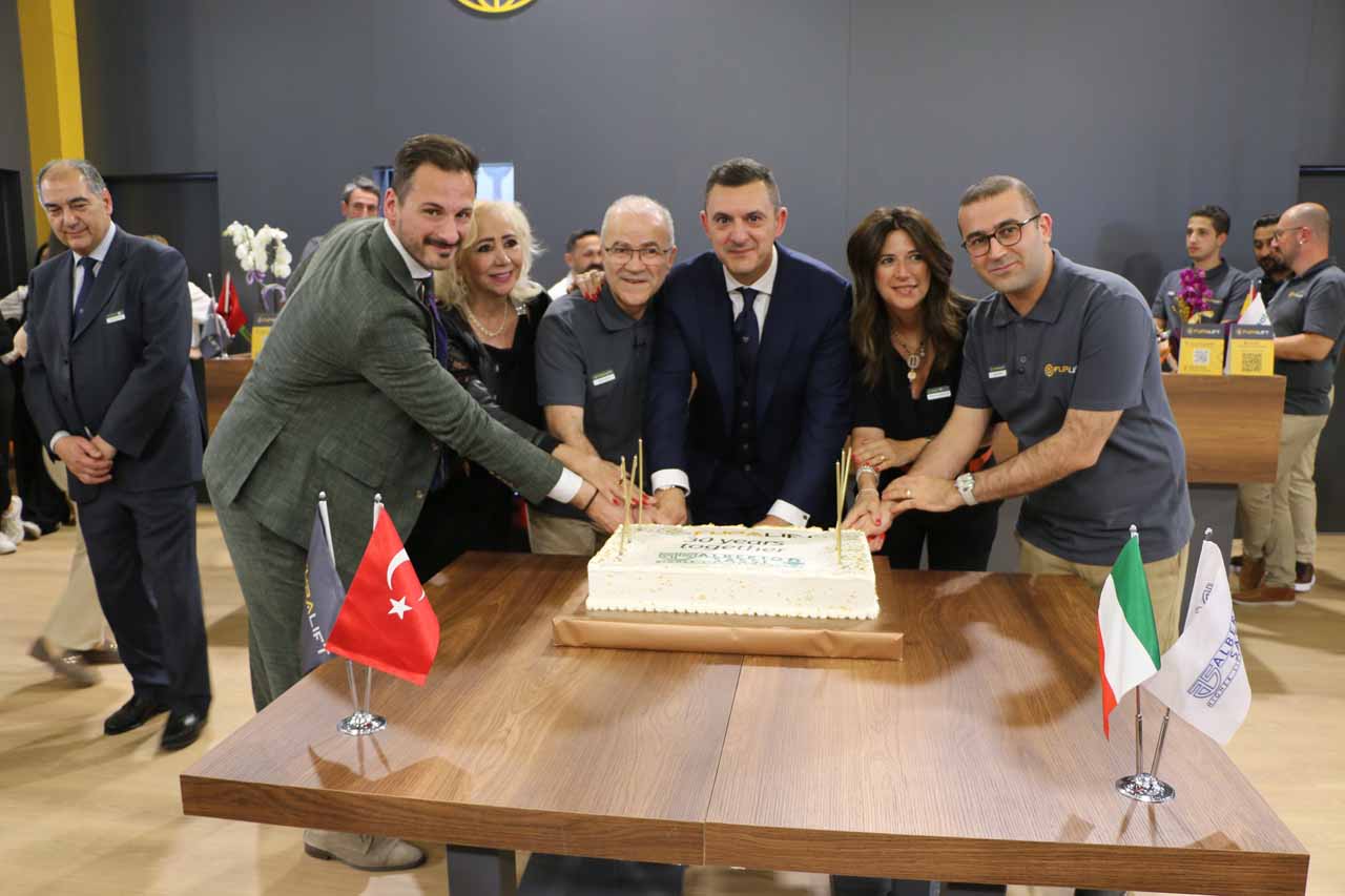 Fupa Elevator and Italian machine manufacturer Alberto Sassi celebrated the 30th anniversary of their strategic cooperation with a modest event at their booth. During the celebration, Rıza Latif, chairman of the Board of Directors of Fupa Elevator, and Can Latif, member of the Board of Directors, made a speech on the meaning and importance of this long-term cooperation, and drew attention to the contributions and joint success of to theindustry. In his speech, Latif said: