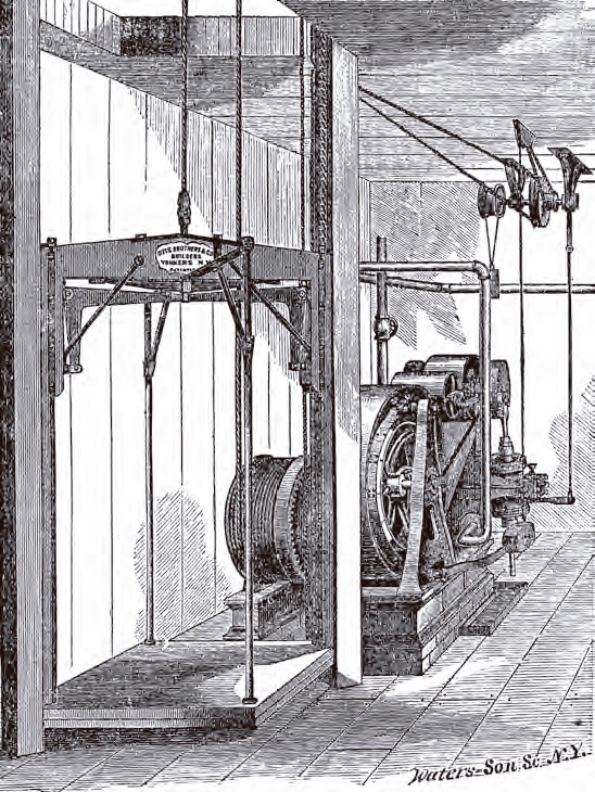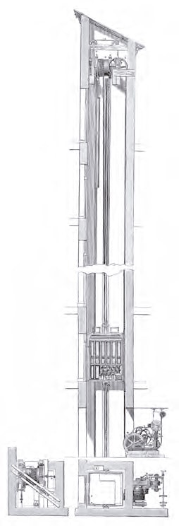 A unique system detailed in 1870s Otis drawings, which serve as the first American depiction of a passenger elevator installation from cellar to penthouse.