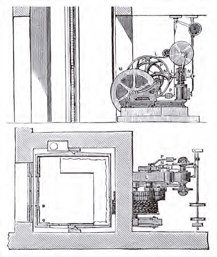 Part Two of this article will examine the remaining features of Otis’ 1870 Patent Safety Passenger Elevator, as well as the publication history of the drawings that constituted the first American depiction of a passenger elevator installation from cellar to penthouse.