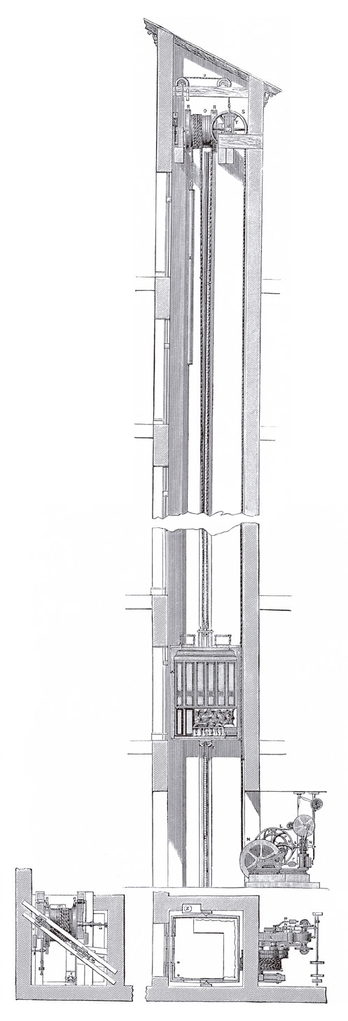 Although it is impossible to calculate the impact of these drawings’ publication in the U.S. and Europe (and more instances of their republication may be awaiting discovery), it may be safe to assume that their relatively complete presentation of a modern passenger elevator played an important role in introducing and selling this technology to the world at large.