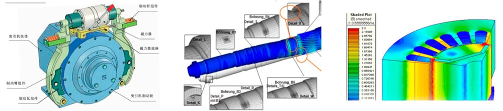 “Feature technology” is a prototype integrated with the latest achievements of new technology, such as CAD/CAM, laser processing, numerical control and new materials. The prototype of the part to be manufactured can be generated directly using 3D CAD model data, which can be easily modified to produce the new prototype. Different from the traditional parts of manufacturing, which need wood, plastic, ceramic, etc., it shortens the time of making a prototype from a few days to a few hours, improving the product-development cycle. For example, during the design of a towing unit by CST, the solid 3D model analysis of a finite element is established to solve the natural frequency and vibration of each order to adjust the distribution of the natural frequency of each shell and reduce the co-oscillation from rotational frequency and transmission caused by the gears and gear worms. The correctness of imitation is verified through the modal experiment shown in Figure 3, which provides the reference for dynamic design and optimization of multiple angles and body sides (Figure 4).