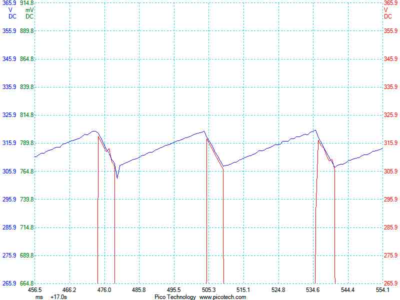 - Figure 2(b): Zoomed voltage waveform during no-loaded up or full-loaded down condition