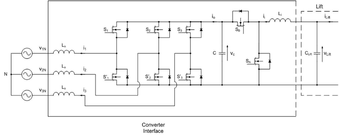 Since regenerative braking is now confirmed by two different means, the decisionmaking process is more reliable and secure, compared with the conventional way of checking the DC bus voltage alone. When the lift is not in operation, but the supply voltage from the grid rises, the DC/DC converter does not function, even though the voltage on the inverter-connected DC bus rises, because the power analyzer recognizes the abnormally high grid voltage is not a regenerative braking process.