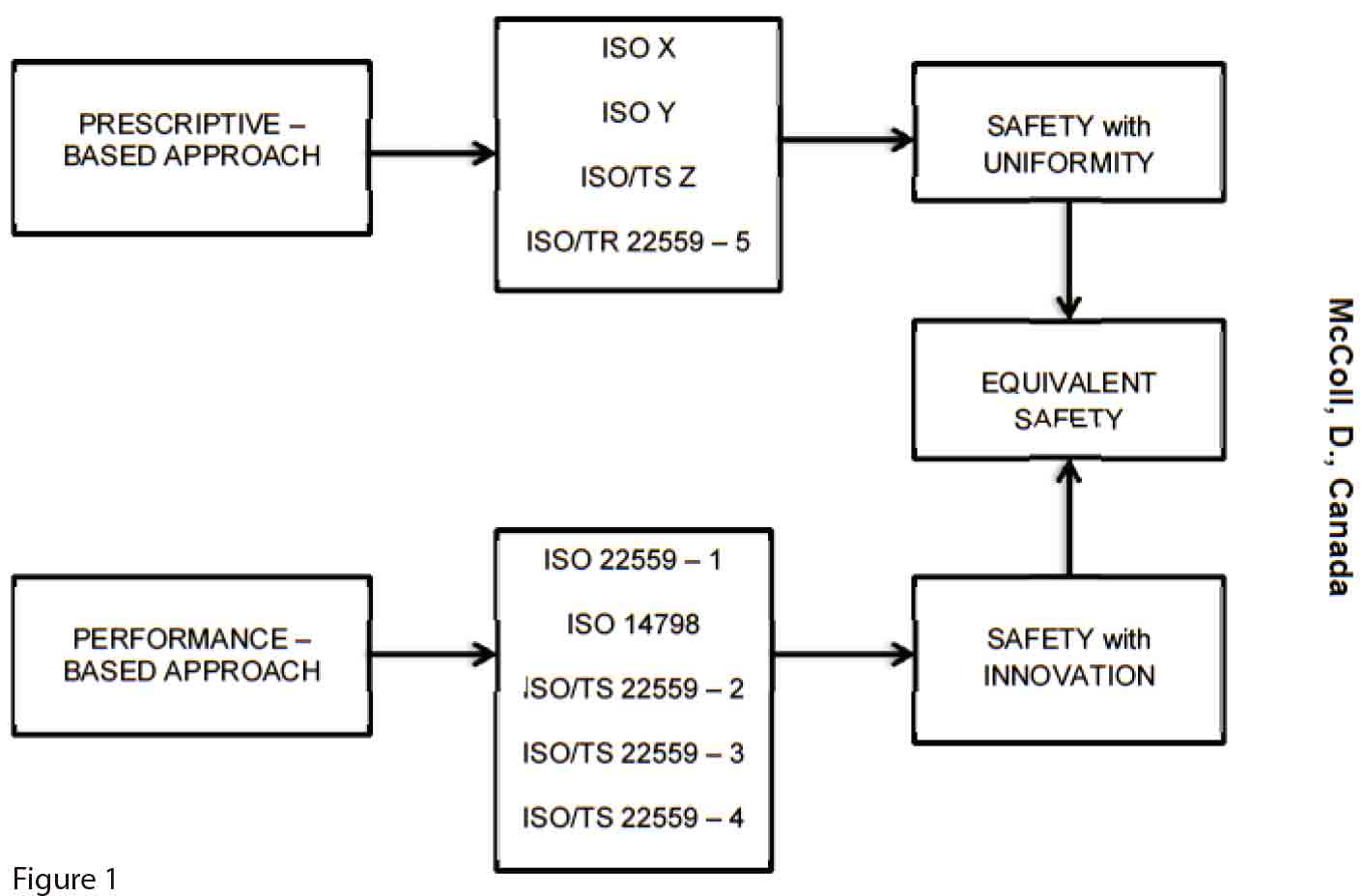 Manufacturers will have a choice of conforming to a single prescriptive code for standard products or a single performance-based code for innovative products. Ultimately, improved global safety will benefit public and worker safety, as well as all stakeholders in the industry. The diagram shown in Figure 1 shows the two-tier approach to elevator safety, following either the prescriptive- or performance-based approach.