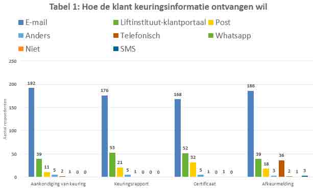 The vast majority (181 out of 200 respondents) want to receive inspection data by email. Also, the vast majority want to receive inspection data via the Liftinstituut customer portal, too. A striking find is that there is no need for inspection data to be received by phone, text or a WhatsApp message.