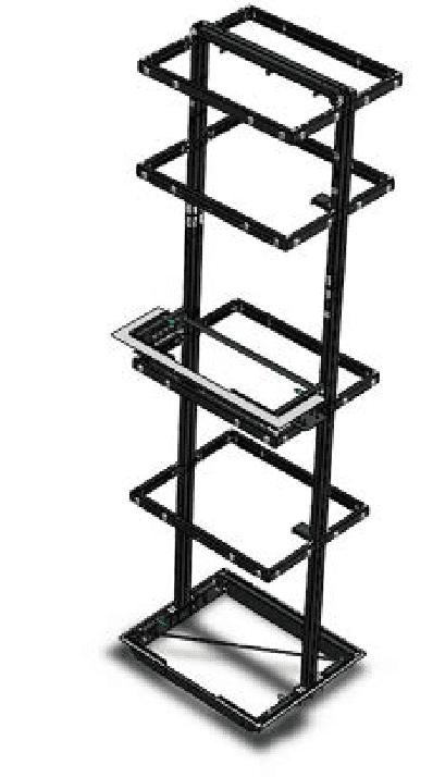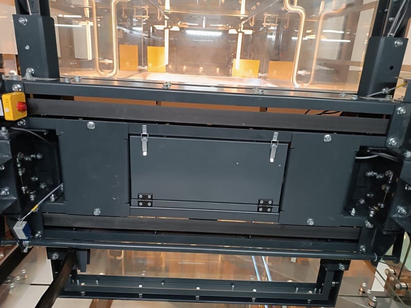 In this context, instead of using a steel construction structure carrying the system from four corners, we went beyond the norm and implemented a steel construction design built on two steel pillars behind the main rails.