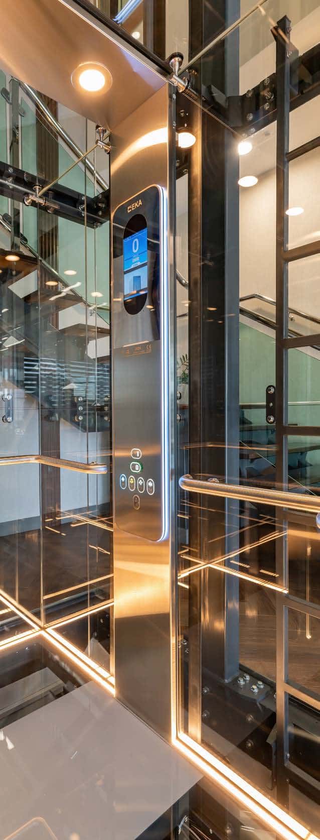 To make the cabin ceiling look more transparent and more spacious, the landing and cabin door mechanisms are designed to be at the bottom instead of the top. All systems on the mechanism are customized with 304 quality stainless steel or chrome-plated equipment. The aim here is to add a separate value to the visual integrity.