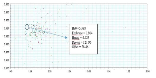 In the optimization studies, 92% and above efficiency and 2 Nm and below torque fluctuation boundary conditions were provided. In this direction, optimization of five different parameters —such as groove mouth opening (Bs0), magnet thickness (Hmag), pole spacing (Embrace), magnet edge shift (Ofset) and motor air gap (g) — was carried out with the genetic algorithm method. Figure 1 shows the distribution of optimization results.