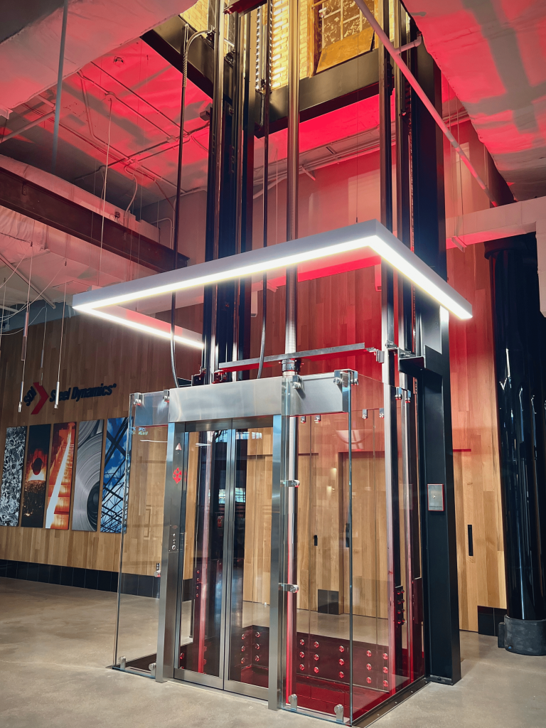 Steel Dynamics initiated this custom project after discovering Liberty through its website, where it was inspired by Liberty’s portfolio showcasing custom glass elevators installed at MOMA, Industry City and Hudson Yards. To further refine their vision, they quickly arranged an in-person tour of several of Liberty’s glass installations across New York City, integrating key design elements from past projects while incorporating Steel Dynamics’ Midwestern manufacturing expertise.