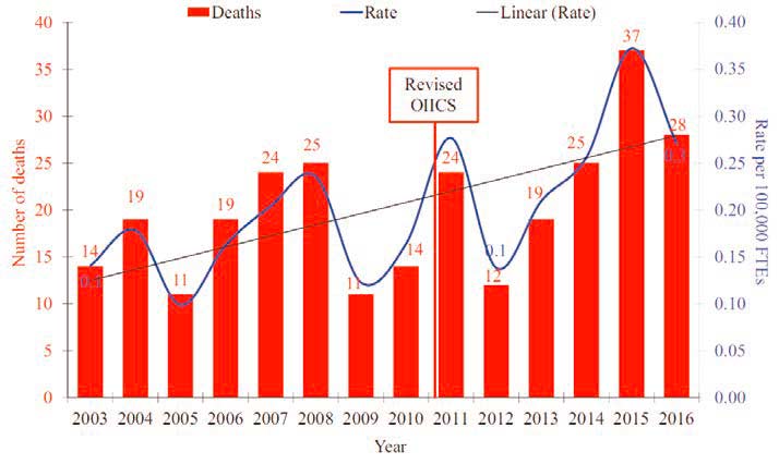 [1] U.S. Bureau of Labor Statistics. 2003-2016 Census of Fatal Occupational Injuries.