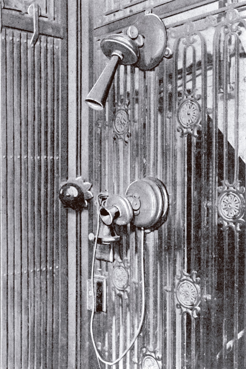 The completion of the Singer Building in 1908 resulted in a new world’s tallest building (612 ft./186.6 m), as well as a new paradigm in elevator telephones. The system was designed to facilitate communication between the starter (the person charged with maintaining efficient elevator traffic), elevator operators, the building engineer and the building watchman. Although the system employed a switchboard located in the basement to manage communication between the elevator cars and other points in the building, the starter had the ability to independently contact the elevator cars. This operation depended on an enhancement that resulted in a telephone system “designed specially for elevator operation.” Indeed, the title of the Electrical World article “Loud Speaking Telephones for Elevator Operation” hints at the use of something beyond a normative telephone and prompts the question, “What was a loud–speaking telephone?”
