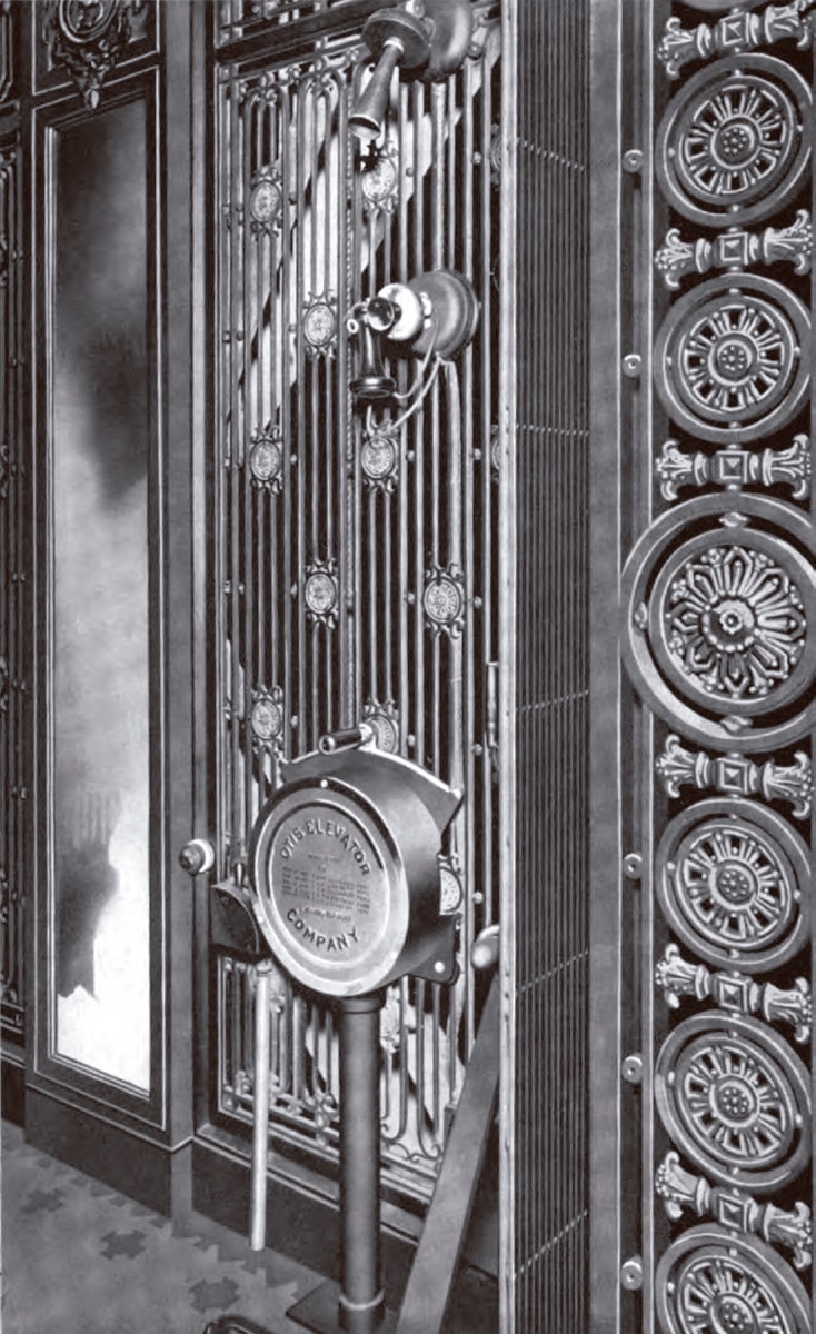 “In case of the derangement of any portion of the mechanism of a car, the operator has merely to touch a button, which rings an alarm in the engineer’s office in the basement and registers the number of the disabled car on a switchboard; telephonic communication is then at once established, and no time is lost in locating the fault in the elevating mechanism and making the necessary repairs. It is rare that it is necessary to have recourse to the telephones, but the fact of their presence adds not a little to the sense of security to multitudes who daily make use of the elevator service.”