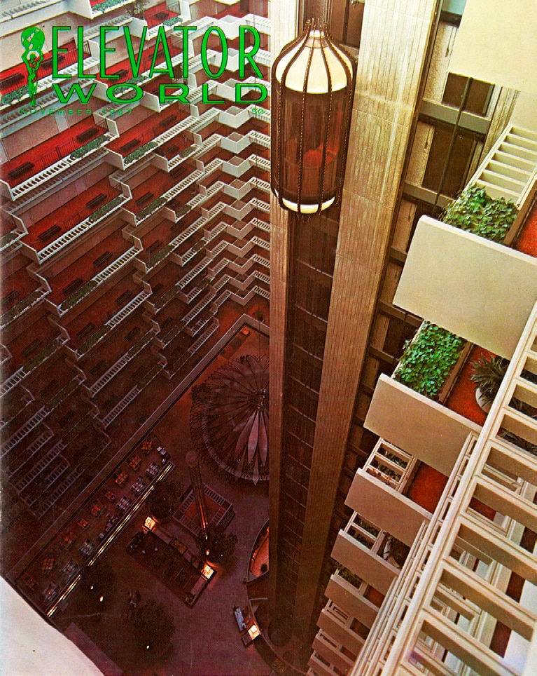 In November, EW reported on the opening of the Hyatt Regency Hotel in Atlanta, which featured one of the first large-scale interior atriums that employed multiple glass observation elevators. John Portman, the building’s architect, also provided the sketch that inspired the birdcage-like elevator cars, which Sturgeon wrote were designed and manufactured by Otis: