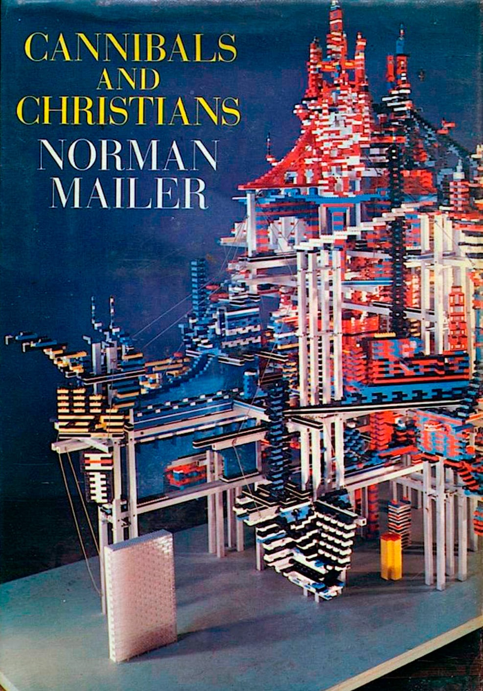 In addition to drawings of Wright’s mile-high skyscraper, the article included images depicting two other visions of future skyscrapers, one of which appeared on the cover of the February issue. The cover image depicted the School of the Future, designed by Frederic P. Wiedersum Associates. The massive proposed building was to house the various academic disciplines in connected high-rise towers (Figure 6). The other image depicted an architectural model inspired by and constructed in 1965 under the direction of American author Norman Mailer. The model reflected Mailer’s vision of the future and represented a building more than 1/2 mi. high, 3/4 mi. in diameter and capable of housing 5,000 people in 15,000 apartments. An aspect of the model not clearly visible in the photograph is that it was approximately 7 ft. high and constructed entirely of LEGO blocks. A color photograph of Mailer’s LEGO City graced the cover of Cannibals and Christians, a collection of Mailer’s writings published in 1966 (Figure 7). Although Lerch did predict that, in the future, “the use of more than one elevator per hoistway would seem likely,” he did not discuss elevators that moved horizontally as well as vertically — systems that might have proved useful in these two schemes.