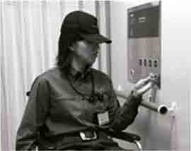 Of all the steps, the ones that are important when using a wheelchair are 6 and 7. If wheelchair users cannot use the buttons in the car when riding the elevator alone, not only can they not reach their destination floor, but they may also not be able to leave if the doors close. When we interviewed wheelchair users about using elevators, many told us this makes them anxious.