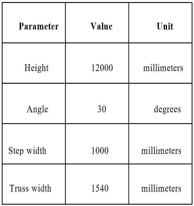 In this study, a typical escalator and its technical specifications have been considered as the main parameters for truss design and analysis (Table 1). The parameters are defined as: