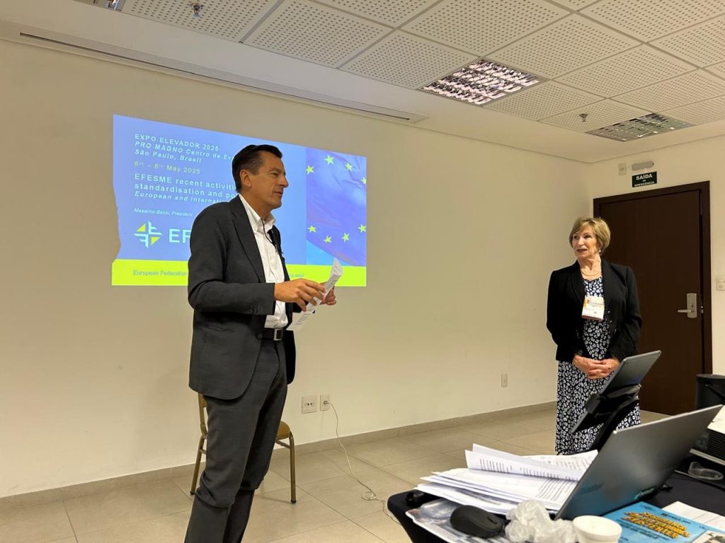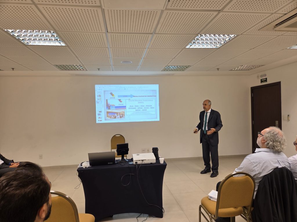 Asociación de Elevadores del Mercosur (AEM) – Mercosur Elevator Association – was created in 2013 to defend industrialization and the interests of independent elevator companies within the Mercosur commercial block. Member companies based in Brazil and Argentina join together to compete for better conditions on their respective markets. To this end, AEM organized its eighth meeting, AEM-EU, to inform members about the situation of small and medium-sized enterprises (SMEs) compared to the European state of affairs. AEM chair Fábio Becker Aranha and its Argentine Vice President Rafael Cala represented AEM. Europe was represented by Massimo Bezzi, EFESME’s president.