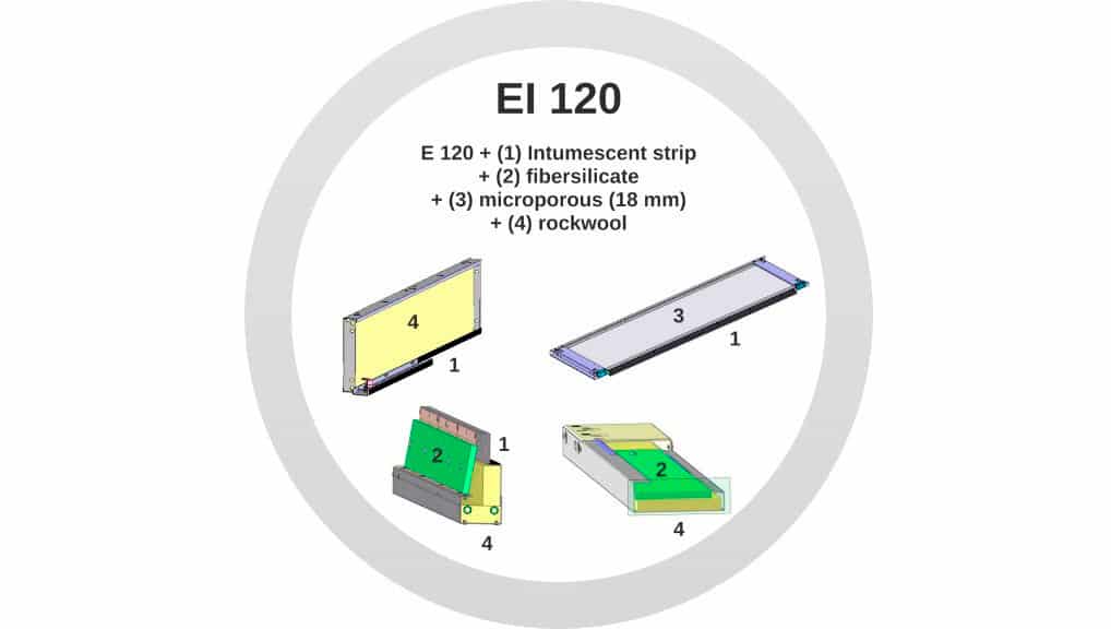 Fermator uses different types of materials and designs for different types of door panels to cover all global elevator market needs and specifications. To reach proper EW certification, we use a kind of aluminum foil on top of our E 120 tested panel design in the radiation tests. For EI 60 certification, we use intumescent strips, fiber silicate textiles and microporous insulation panels to keep fire insulation inside the panel with the same construction design of E 120 panels (except of vertical reinforcements). Fermator uses additional rockwool for EI 120 classification.