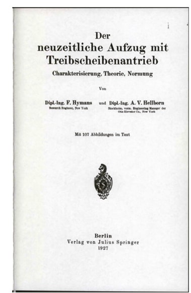[20] Hymans, F. & Hellborn, A.V. “Der Neuzeitliche Aufzug mit Treibscheibenantrieb” (translated as “Modern Elevators with