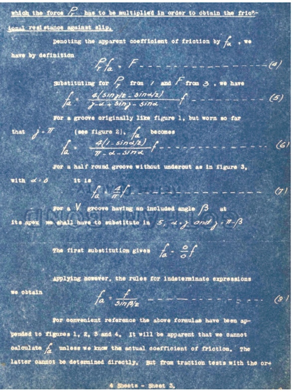 Hymans’ 1920 manuscript sheets for the derivation of the rope groove shape factory are shown in Figures 16 and 17 for purposes of historical context and accuracy.