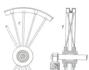 Koepe’s German patent embodied a large driving pulley arranged with a deep U-shaped metal channel in which the single hoist rope would contact a semi-round groove shape (Figure 3), taken from the German patent. In an alternate design disclosed in the U.S. patent, wooden blocks were assembled into the sheave rim to provide a wearable seat for the hoist rope. In the U.S. patent,[3] the text states: “The groove of the winding-pulley is, by preference, lined with wood or other suitable soft material for the purpose of increasing the friction and of diminishing the wear and tear of the rope.” Kempe’s Engineers Yearbook expanded on the different rope seats employed in Koepe friction hoists: “Wooden blocks are fastened in a recess in the rim of the wheel (sheave). In Germany, inserts of leather, rubber or bonded fibre are set in wooden blocks.” [4]