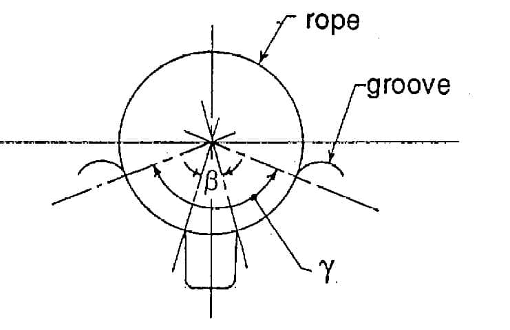 “At first, a 30° V-shaped pinch groove was used. This shape of groove gave ample traction when the sheave was new, but as the ropes wore the grooves, the pinching action and corresponding traction [were] frequently reduced to the point of slipping. To prevent rapid wear and corresponding reduction of traction, a circular undercut groove is now generally used.”