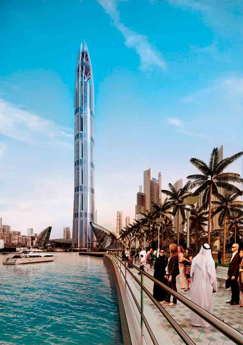 - Figure 2: 200-plus story, mixed-use Nakheel Tower, Dubai: design architect: Woods Bagot. Status: design development complete; foundations started; not built
