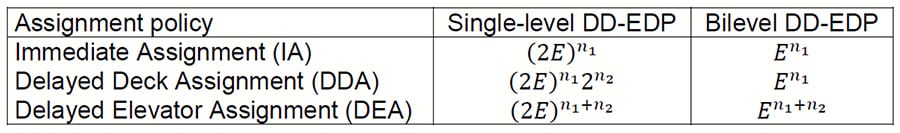 An alternative way of reducing the effects of future system states is to postpone the instant when the serving elevator or deck is finally fixed. The DD DCS allows the delayed deck assignment policy (DDA): the serving elevator is still immediately signaled, as is customary, but the EGCS can reoptimize the serving deck until the last moment. The delayed elevator assignment policy (DEA) allows reoptimization of both the serving elevator and deck. The DEA has also been considered for single-deck elevators.[9] In the “Genetic Algorithm for Real-Time Optimization” section, a real-time genetic algorithm is introduced to solve the bilevel model under DDA and DEA, while the advantages of these techniques are demonstrated by simulations in the “Simulation Results” section.