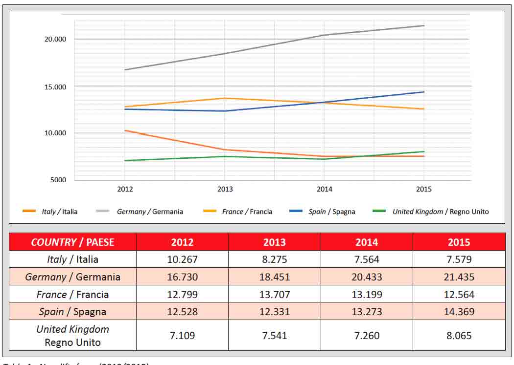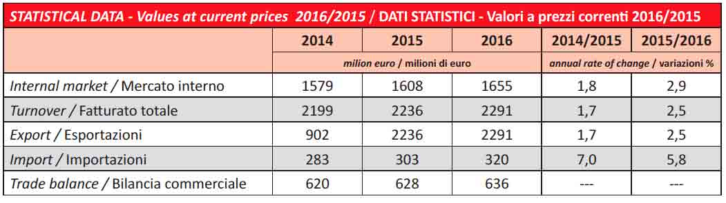 Looking at the international market (+2.9% in 2016/2015 versus +1.8% in 2015/2014), “the positive datum might show a stabilization of the industry, even if market levels are significantly lower than the pre-crisis period.”