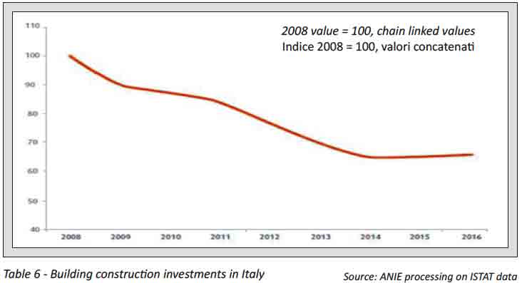 The AssoAscensori report closes with an analysis of the European building construction market (Table 6). It states: