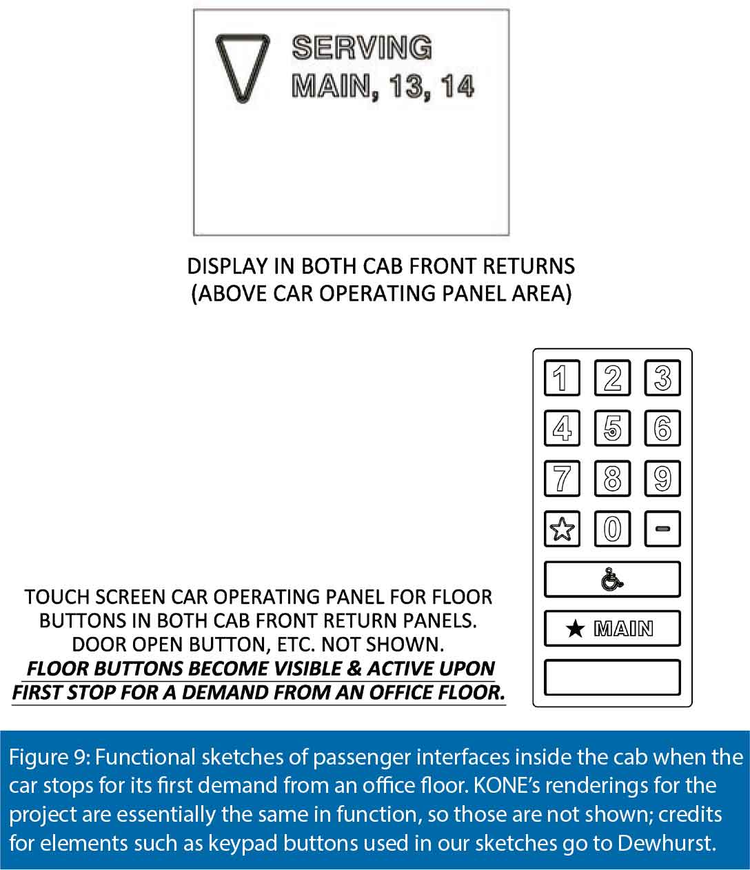 Special credit is also extended to Dewhurst PLC, an independent U.K. provider of fixtures to the elevator/lift, keypad and rail industries, for its details of keypad buttons, arrows and car letter signs used in our original sketches. Also, the project graphics are in-progress screenshots by KONE that show industrial design thought extending beyond our sketches, which were only functional drawings.