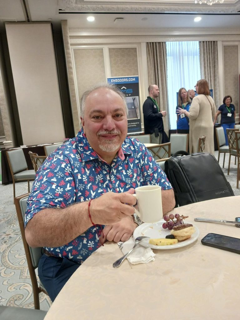 As the 28 vendors set up their booths in the Monteleone’s Iberville Ballroom, NAESA International board member Joe McAnulty of ATIS offered a NAESA Code Update Continuing Education (CE) session from 8 a.m. to 5 p.m. for .8 CE Units. Forum registration opened at 6 p.m. to coincide with the Opening Night Reception and a chance to visit vendor booths, as well as a silent auction to benefit the Elevator Escalator Safety Foundation (EESF). As soothing Sinatra-era music played in the background, guests talked and made their way around the room with a full open bar at its center. Servers dressed formally in white jackets carried around plates of elegant hors d’oeuvres, explaining each in detail — turkey Waldorf salad on a miniature scone, lamb chop lollipops, blue crab and corn beignets…. Steadfast industry supporter Daniel Swett of Lift AI (not to mention Greg DeCola of VDA) bid on nearly everything in the EESF silent auction — cigars, golf clubs, headphones and gift cards — helping the Foundation net a total of approximately US$3,700.