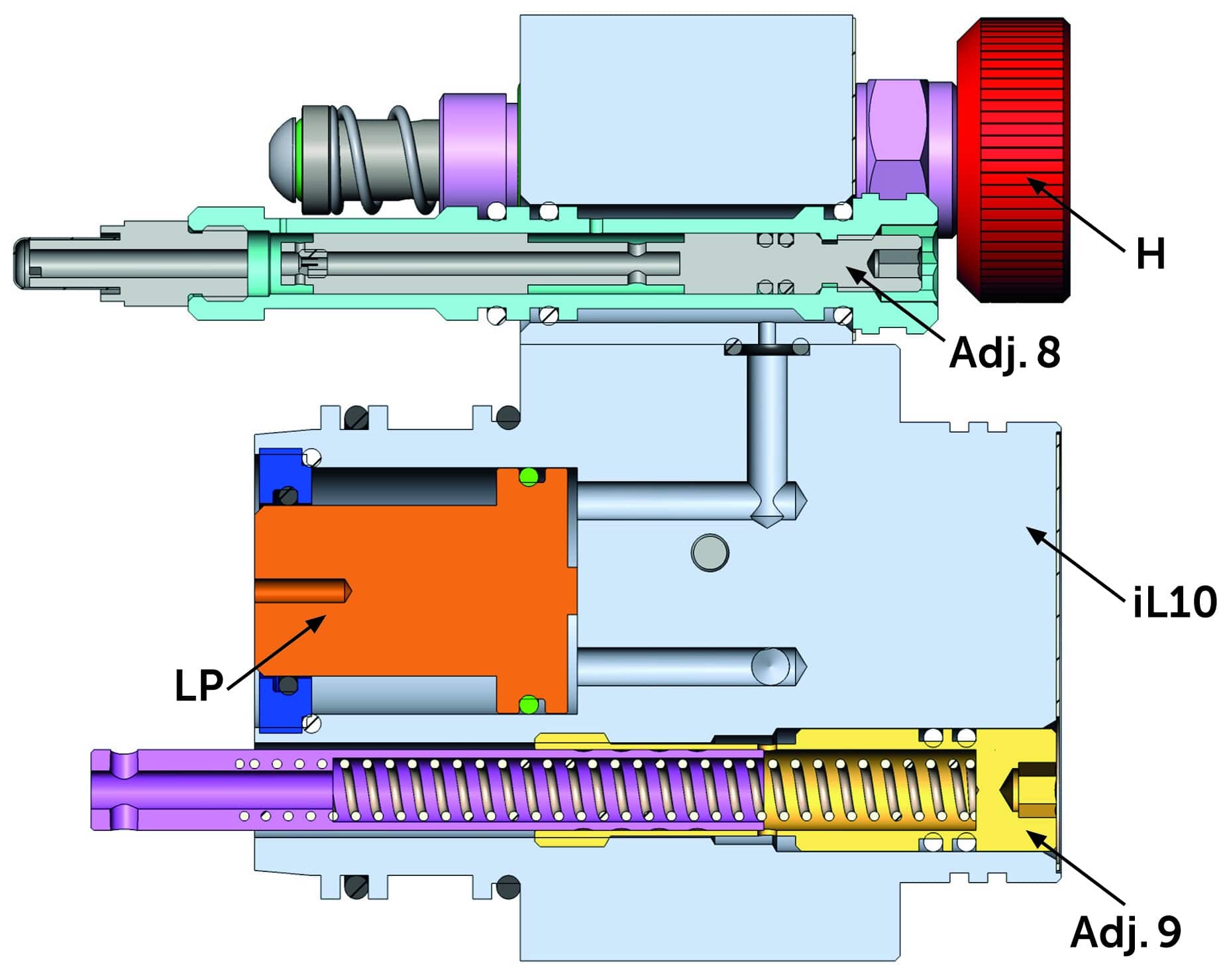 It was not possible to duplicate a similar iL10 solution because of the size of the 3/4-in. EV-series control valves’ down flanges. Instead, existing 3/4-in. L10 valves have been redeveloped and integrated with the 3/4-in. EV-series valves, eliminating the need for fittings and adapters. This new development, L20, has the same working principle as L10 but generates negligible pressure drop, and offers a compact design, ease of assembly, no risk of external leakage and higher energy efficiency. It is shown in Figure 3.