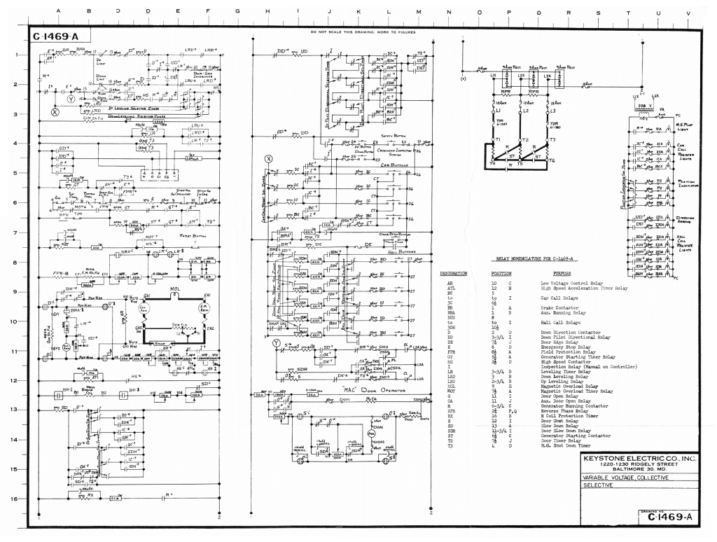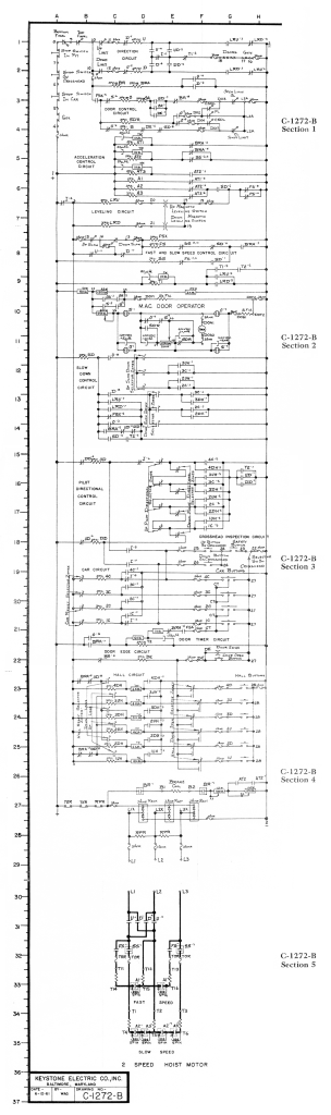 The next drawing, Print No. C-1272-B, which presented a two-speed AC system with collective-selective control, was used in seven lessons. The production of this drawing differed in that its format was a direct response to student complaints: