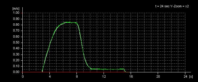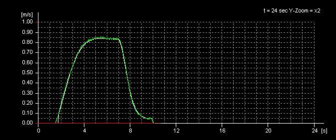 Correct valve adjustments are critical for trouble-free operation and minimizing wear and tear of the components and oil seals. A wrongly adjusted valve during the installation phase not only results in erratic travel characteristics, but also keeps heating the oil for the rest of the time. For example, Figure 4 shows a wrongly adjusted valve with unnecessary longer leveling time; whereas Figure 5 shows the travel with optimum leveling time. Table 1 shows optimum bypass, acceleration, deceleration and leveling timings of valve adjustments.
