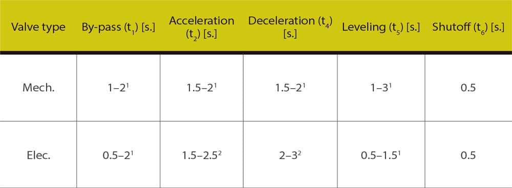 - Table 1: Typical travel times for mechanical and electronic valves: 1 depends on the temperature and pressure ranges; 2 depends on the travel speed.