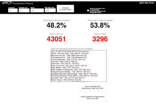If owners, maintainers, and AHJs could all see the same information, in real time, they could quickly and correctly estimate the status of maintenance. Figure 1 is from a project with 592 units maintained by five maintenance contractors. The status of incomplete maintenance is easily displayed when all maintenance contractors use a system to record the completion of the work.