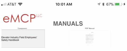 If a task is complicated, eMCP can provide specific manuals that relate to the unit. As an example, Elevator World, Inc. has provided permission to have the Elevator Industry Field Employees’ Safety Handbook as a reference in eMCP. This reference can be opened any time it is needed, regardless of WiFi signal. Manuals for door operators, driving-machine brakes and controllers, and any other PDF can be added and accessed while the technician is at the site without internet access.