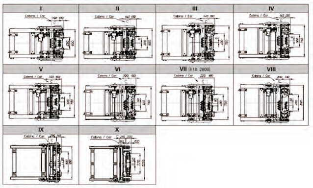 The MRM W Line is a flexible and compact product with several standard configurations (Figure 2) that can be installed in very small wells or replace current elevators, increasing its capacity, in some cases, by up to two people. The MRM W Line can optimize the well-space by up to 60% (space occupied by the car).