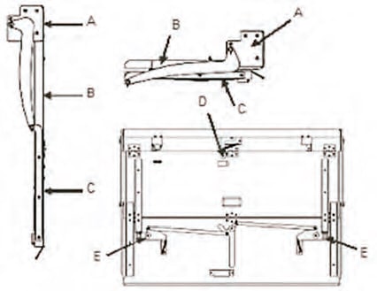 This component has been designed according to EN 81-21 5.8.2 a), EN 81-20, under the Lift Directive 95/16/EC and 2014/33/EU and according to the Machinery Directive 2006/42/EC. It has two working positions: folded, during normal use of the lift, and unfolded, used in maintenance and rescue operations. Figure 5 shows it is composed of a fixed part (A), which is joined to the sill support, and two foldable sheets (B and C). The two foldable sheets are articulated. There are two blocking systems; one of them is for the folded position (D), and the other is for the unfolded one (E). This foldable apron lets us achieve very small pits and maximum safety in case of passenger rescue.