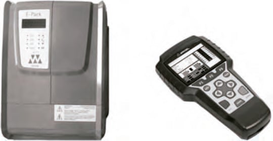- E-Pack: As Wittur’s standard controller, the E-pack consists of a frequency inverter with an integrated lift controller and different interfaces to connect all necessary peripheral equipment such as the car-operating panel, landing-operating panel, etc. The E-Pack has been designed completely plug-and-play, and can be provided with a single or double cabinet, depending on the customer’s application. Its protocol communication is CANbus, and it includes functionalities such as direct landing or sleep mode as standard. The MRM W Line, in combination with the E-Pack, has obtained category A, according to VDI-4707 and ISO-25745. The E-Pack also has a very friendly handset with all functionalities inside to be able to easily and quickly control all parameters of the elevator (Figure 7).