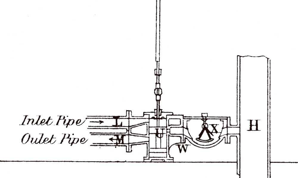 “When the velocity of the water, in either direction, does not exceed that decided upon, the swinger hangs in a vertical position without moving, but the instant the velocity increases beyond that point, i.e., the instant the lift moves at too great a speed, the swinger rises and closes the passage to such an extent as to reduce the speed to the normal velocity, without impeding in any way the [static] force of the water under any pressure whatever.”