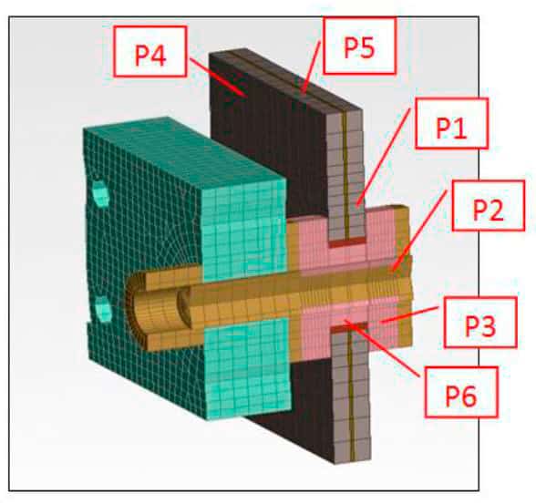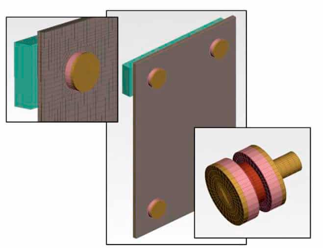 From the FE results, high-stress areas are identified. In the experimental structure, strain cages are placed at the high-stress areas (identified by FE analysis), and stresses are measured experimentally. If the calculated and experimental stress values are not in agreement, FE model updating methods are applied; otherwise, the FE model is considered to be validated. When the subsystems’ FE models are validated, the experimental structures are synthesized to form the complete assembly, and a complete FE model is constructed. Experimental measurements are also recorded and compared to the calculated (FE) values.