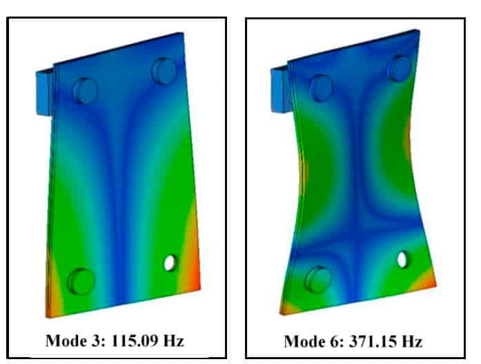 - Figure 6: Typical eigenmodes predicted by the nominal FE model