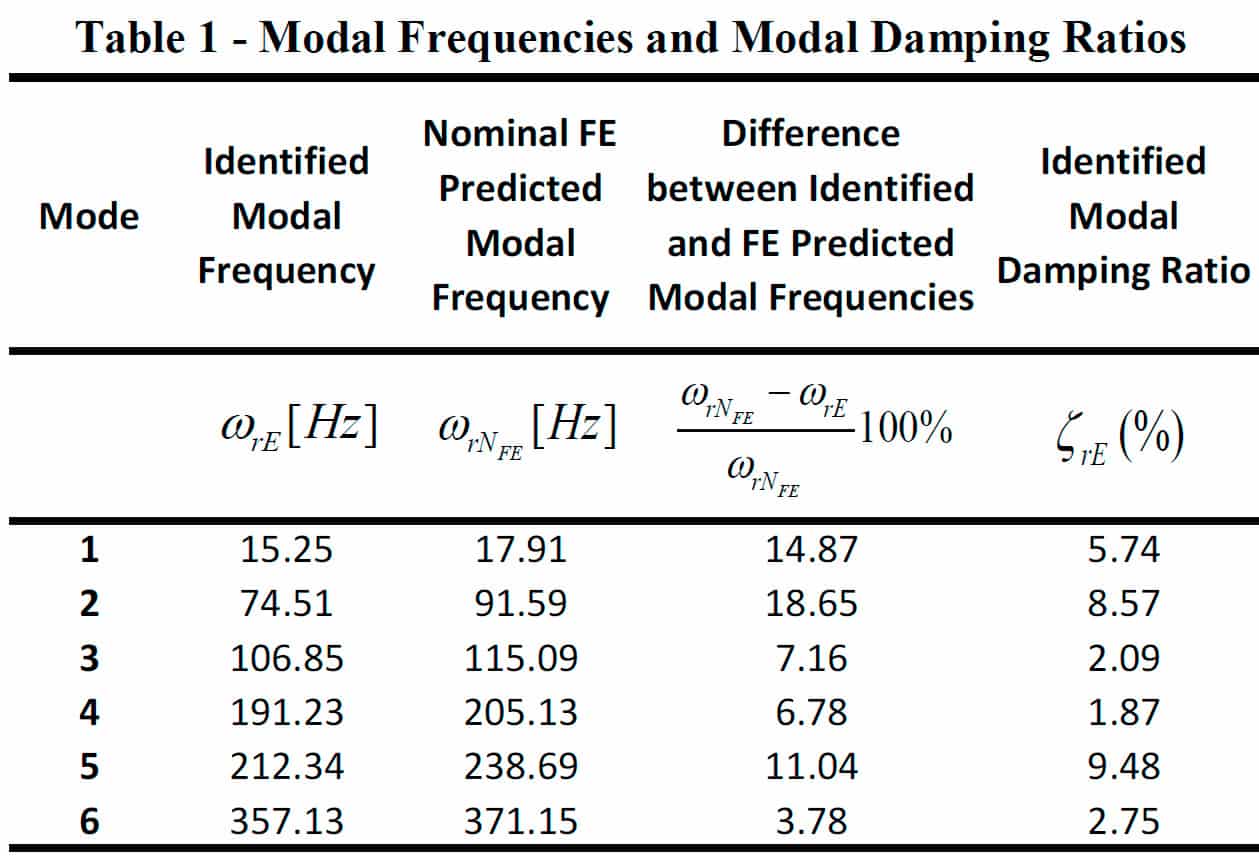 - Table 3: Comparison between identified and optimal FE predicted modal frequencies