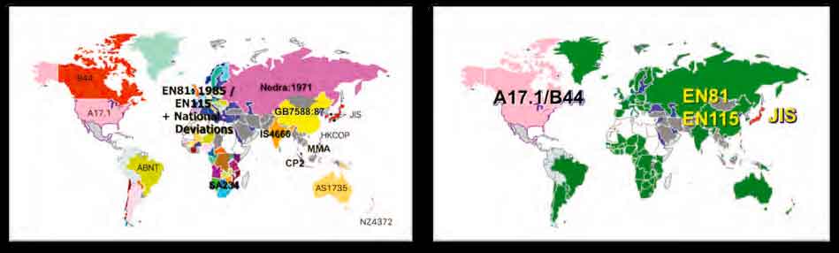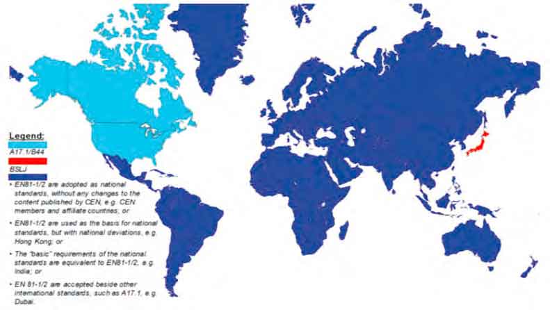 Figures 3 and 4 show the only countries not adopting the EN 81 are the United States, Canada and Japan, according to TC 178.