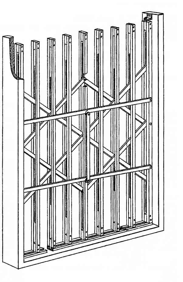 In 1899, Colliery Engineer Co., publisher of the International Library of Technology (a series of correspondence-school textbooks), published Ornamental Ironwork, a booklet that included a detailed technical description of a Bostwick-style gate. The description was keyed to a series of three drawings that illustrated the gate’s key components (Figure 3):