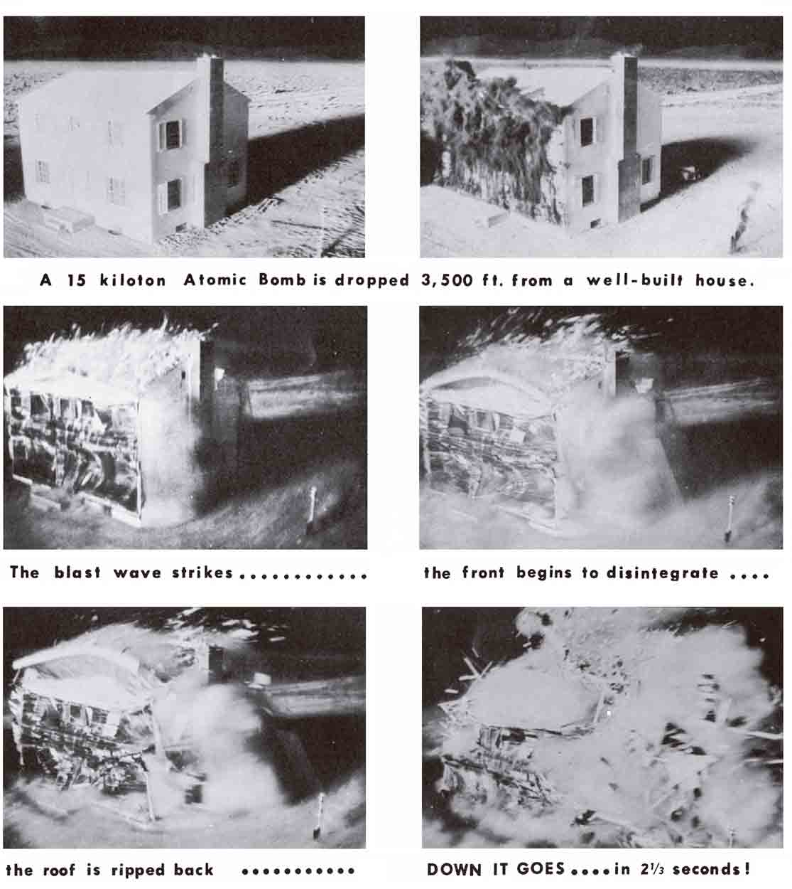 The plan’s republication in 1955 was accompanied by a cover illustration of a nuclear bomb test and a series of photos depicting the complete destruction – in 2.3 s. – of a test house located 3,500 ft. from ground zero (Figures 1 and 2). The photographs were taken during the test of “Annie,” a 16-kiloton bomb detonated from a 300-ft.-tall steel tower at the Nevada Proving Grounds on March 17, 1953. This was the first test open to Civil Defense members and was likely the first nuclear explosion witnessed by Sturgeon. This experience, and these chilling images, served as the impetus for the development of the EERS plan and serve as reminder of the awesome destructive power of nuclear weapons.