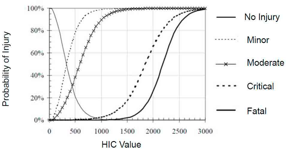 As the HIC value increases, the more strongly the head collides with an object and the higher the probability of head damage.